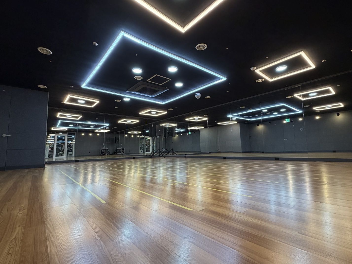 바닥은 충격 흡수 기능이 있는 전문 댄스 마루로 시공되어 있으며,