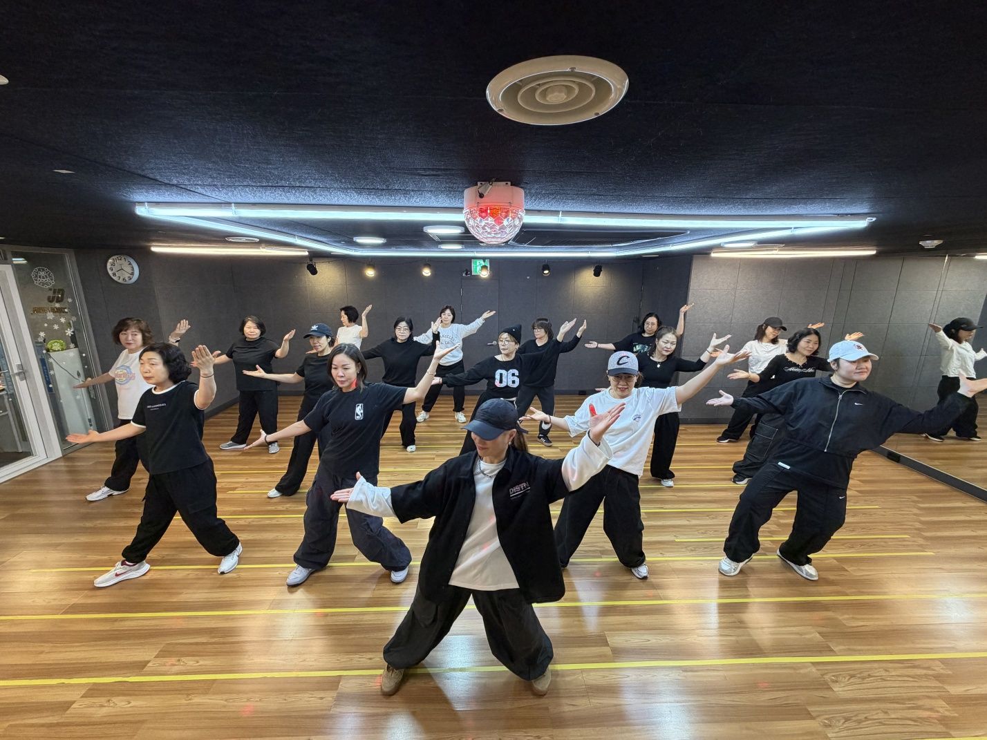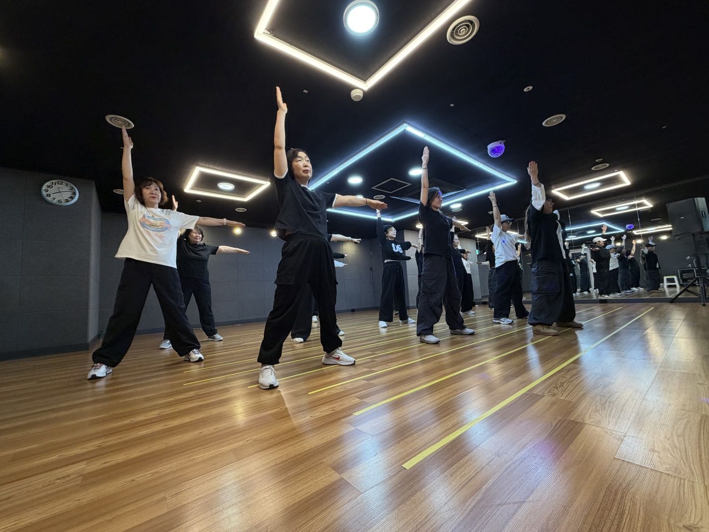 스튜디오는 다양한 댄스 장르를 수용할 수 있는 넓고 쾌적한 연습 공간을 제공합니다.